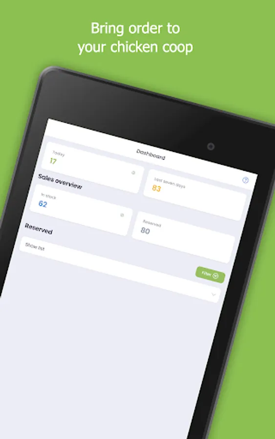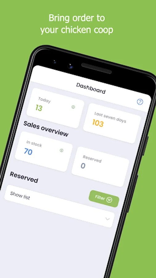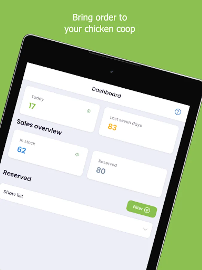 - Reserve eggs for a specific date in order to not forget any planned sales anymore and keep track of all your reservations all the time.