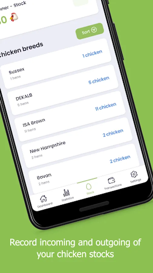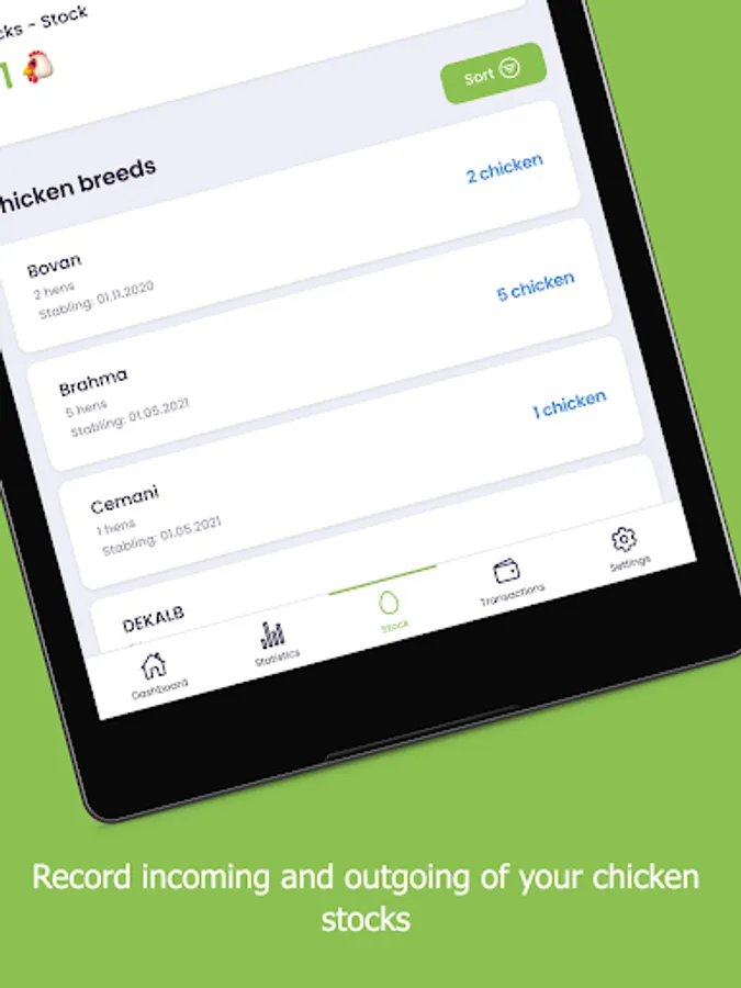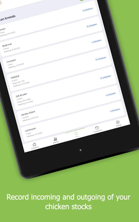 - Manage your chicken stock including date of stabling
