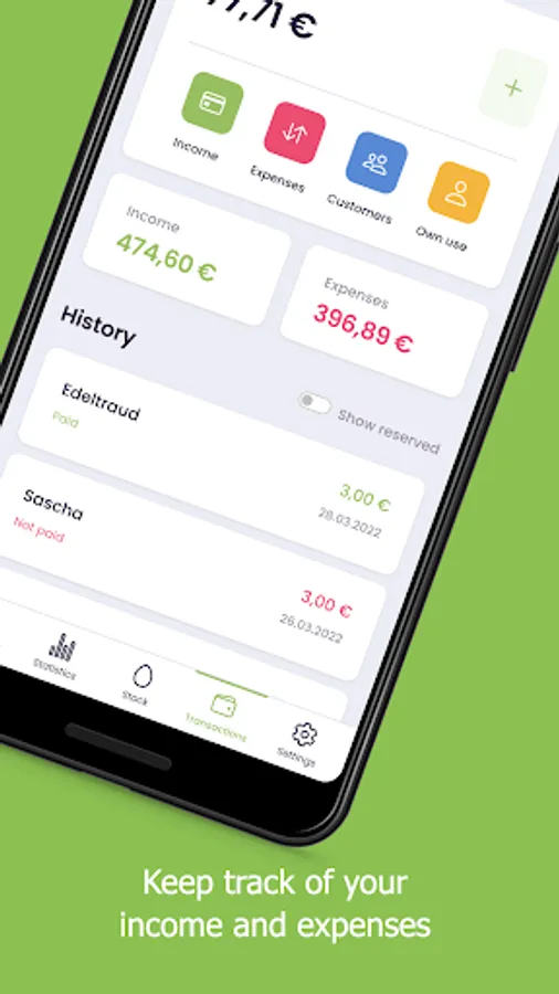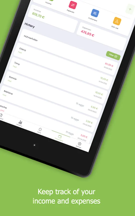 - Lodge egg sales to different customers and declare, whether the eggs are already paid, not paid yet or for free.