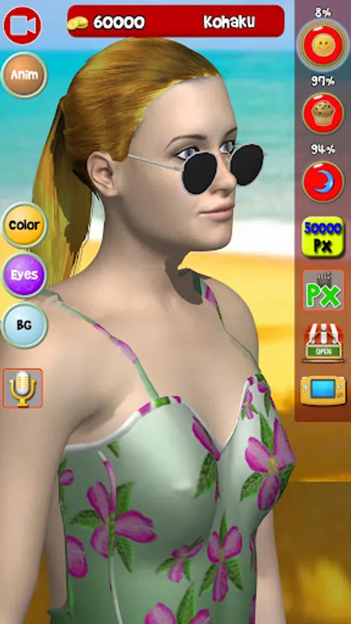 You have a store where you can buy dresses and accessories so you can be happier (she does not care). You can also dress and undress her.