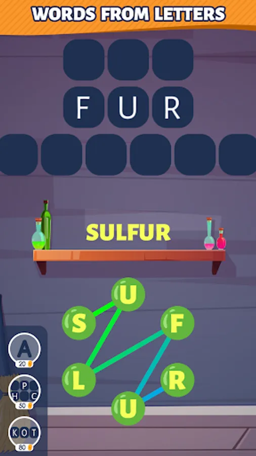 Make as many words as possible from the given letters! These puzzles with elements word connect will test your vocabulary. How many words can you guess?