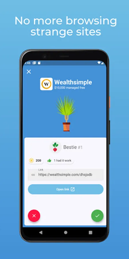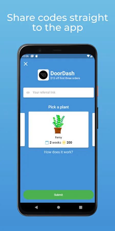 When you add a referral, you get to pair it with a plant that people will see when they look at it. If they choose to use your referral, you will earn points you can use to unlock new plants and customizations.