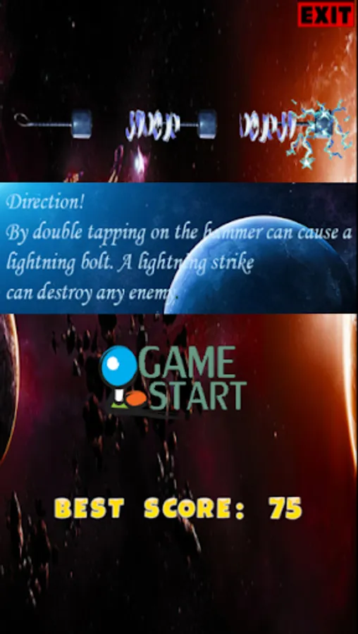 This mini-game is about Thor's Hammer wandering around the galaxy. On his way there are obstacles that he must overcome. And all this happens after end of the world. In Norse mythology, End of the World is a series of future events, including a great battle, foretold to ultimately result in the death of a number of major figures (including the gods Odin, Thor, Týr, Freyr, Heimdallr, and Loki), the occurrence of various natural disasters, and the subsequent submersion of the world in water. Afterward, the world will resurface anew and fertile, the surviving and returning gods will meet, and the world will be repopulated by two human survivors. End of the World is an important event in Norse mythology, and has been the subject of scholarly discourse and theory throughout the history of Germanic studies.