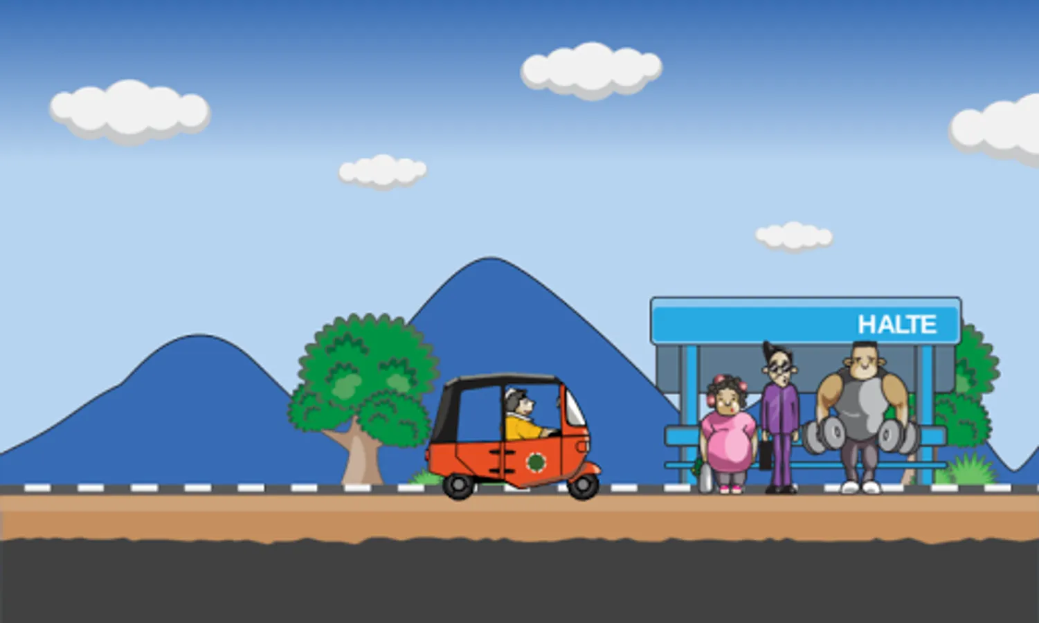Mr Bajaj works as an auto rickshaw driver. The story starts from the suburb of Jakarta City. He must deliver various passengers, house wife, office person, old citizen and many more.