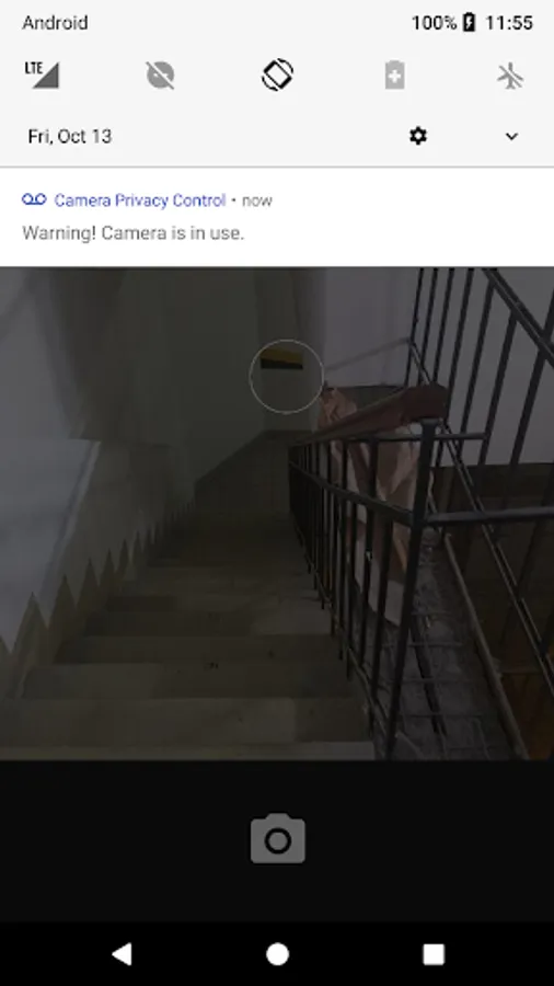 On android it is possible for apps to secretly use the camera without notifying the user which creates a security hole.