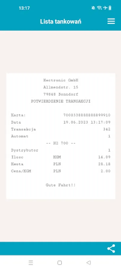 The application searches for the nearest NESO hydrogen station, facilitates the refueling process and allows you to view the refueling list.