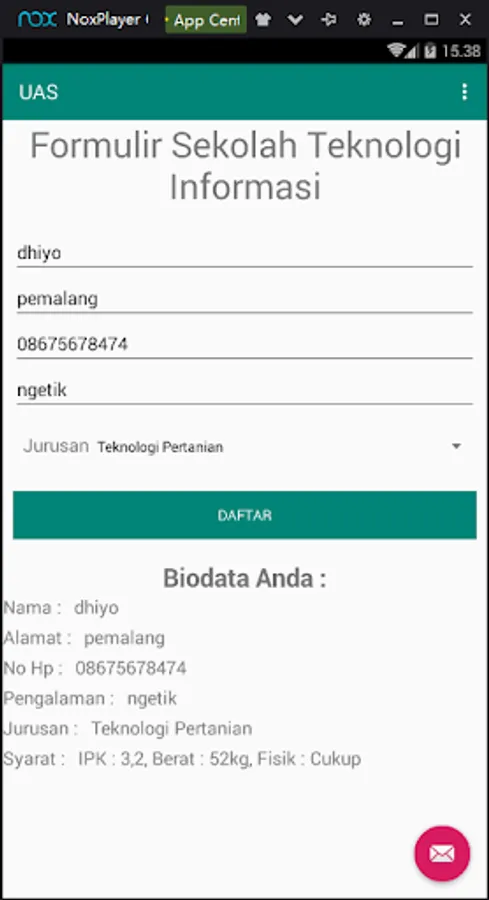 Information technology school registration application for UAS assessment The eyes of mobile programming