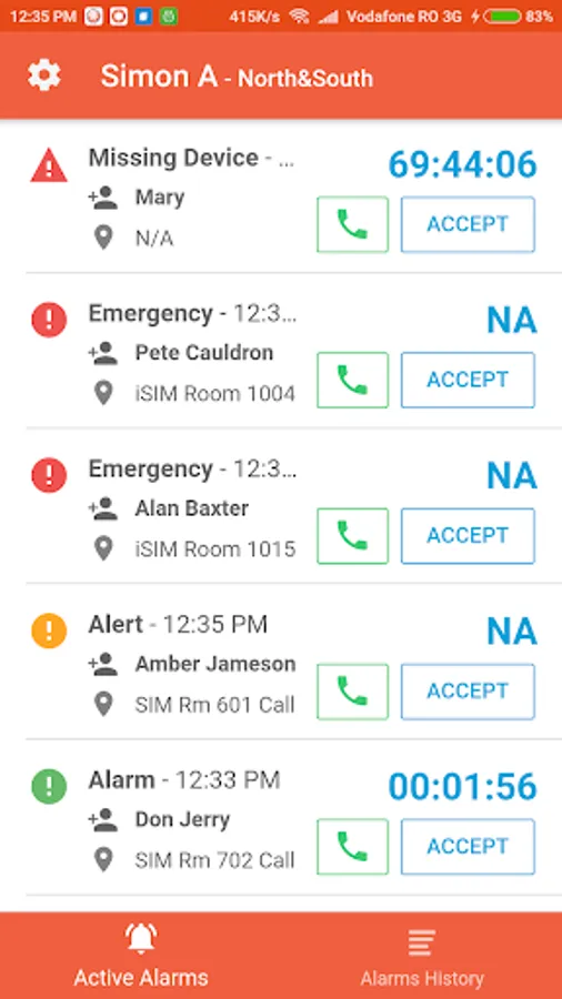Caregiver may accept or callback a predefined phone number by tapping specific buttons on the mobile device.