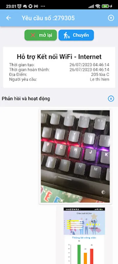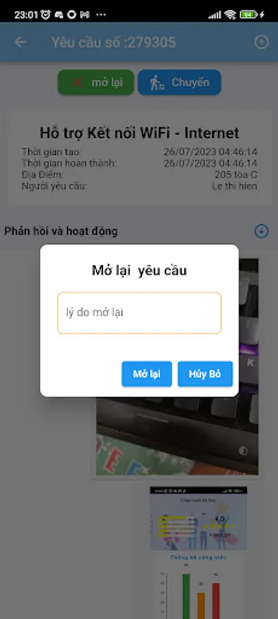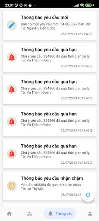 2. Notify employees of new tickets, the application will send notifications and reminders to users about the update status, processing progress, or when their request has been resolved.