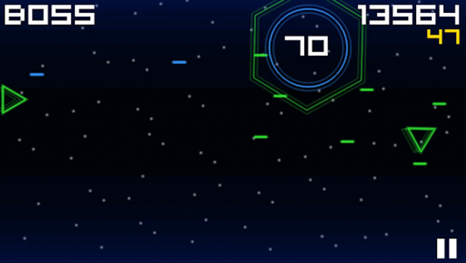 Embark on an epic space quest aboard your stolen star fighter as you attempt to defend your world from geometrical destruction by the polygon invasion. For years the Galactic Empire has sought the elimination of your people. It is up to you to repel the onslaught as you battle through waves and bosses alike. Harness the powers of the galaxy to create shields, explosions, beams, and more to empower your star fighter. With dynamic enemy and boss types, the challenge before you is great. Will you harness the power of the Poly Star?