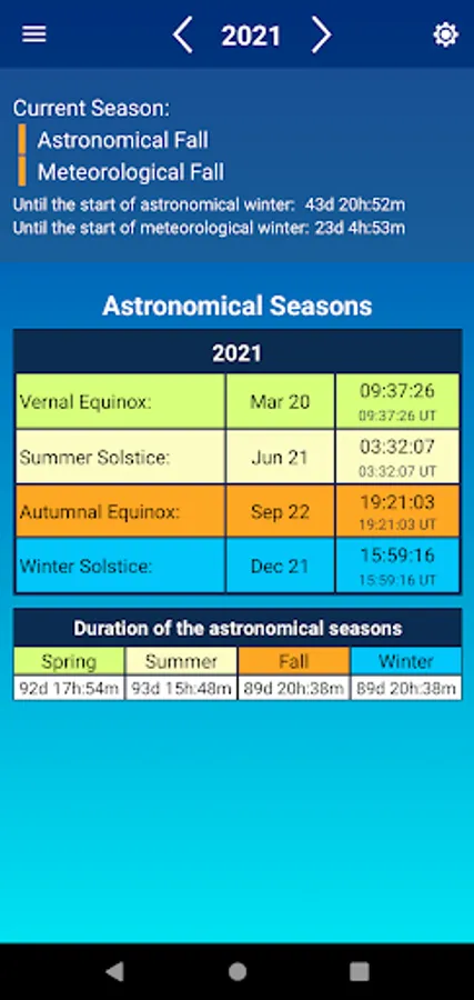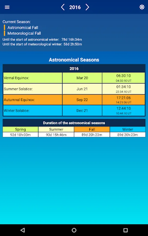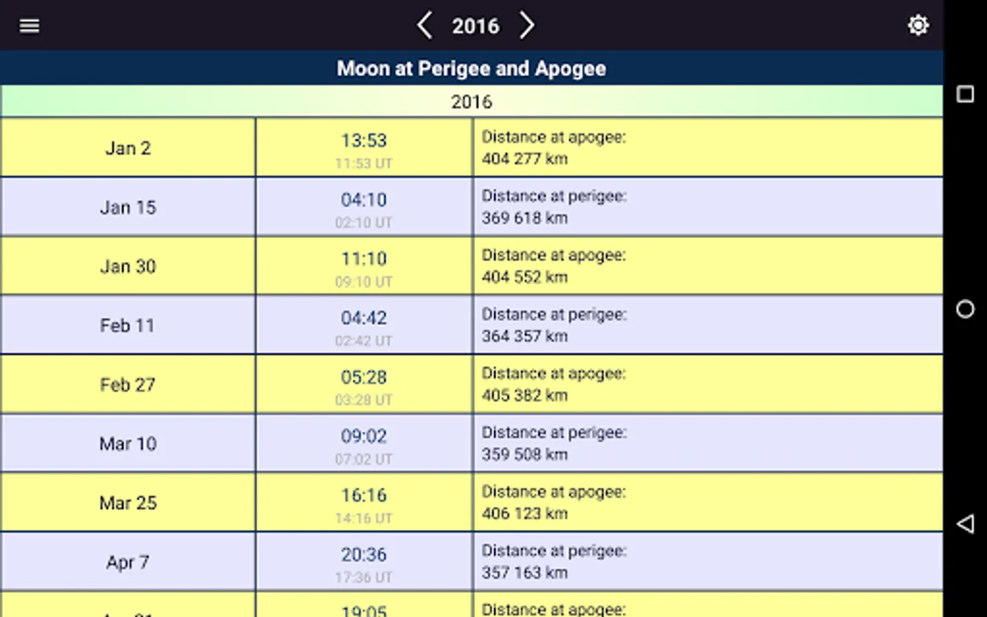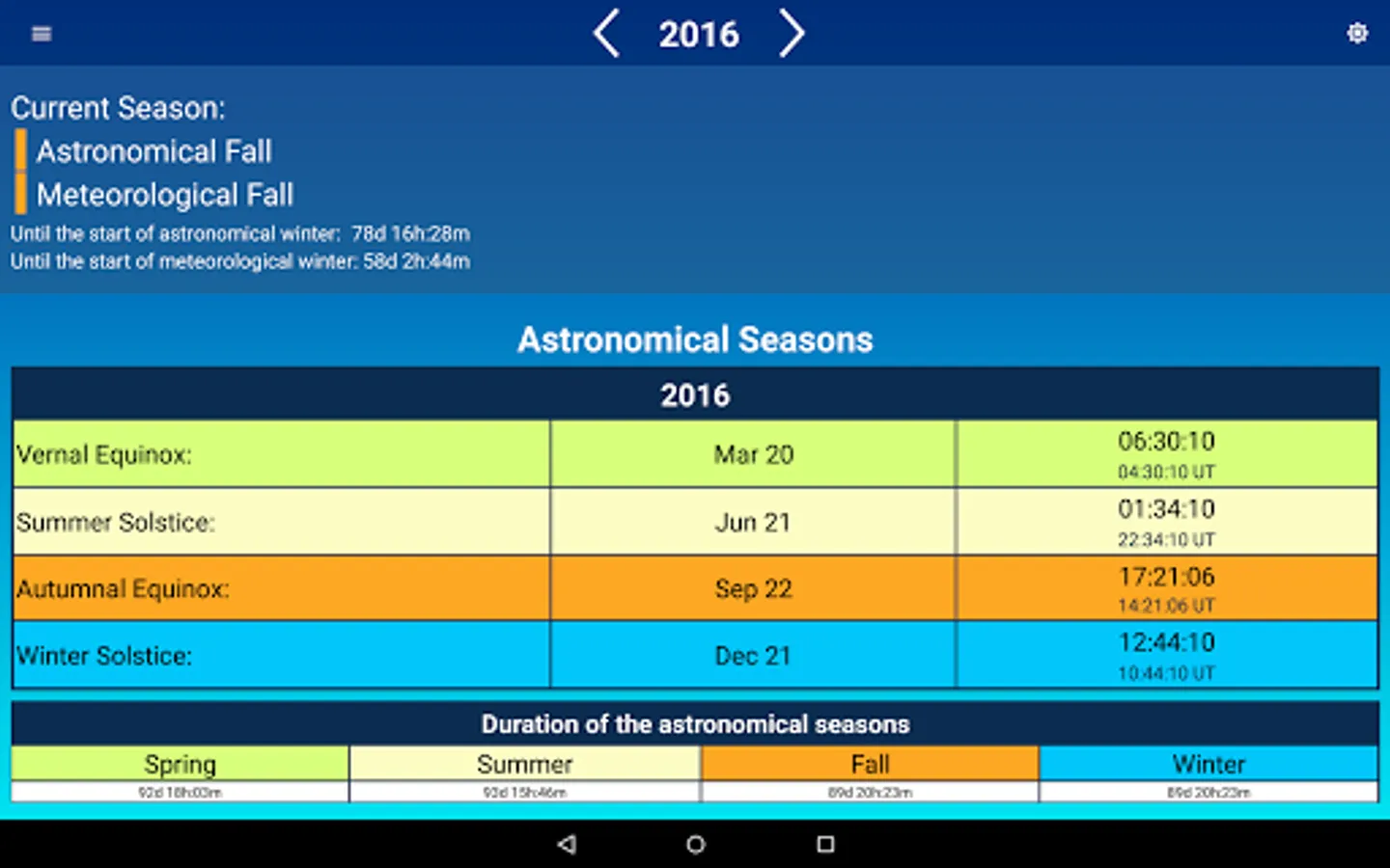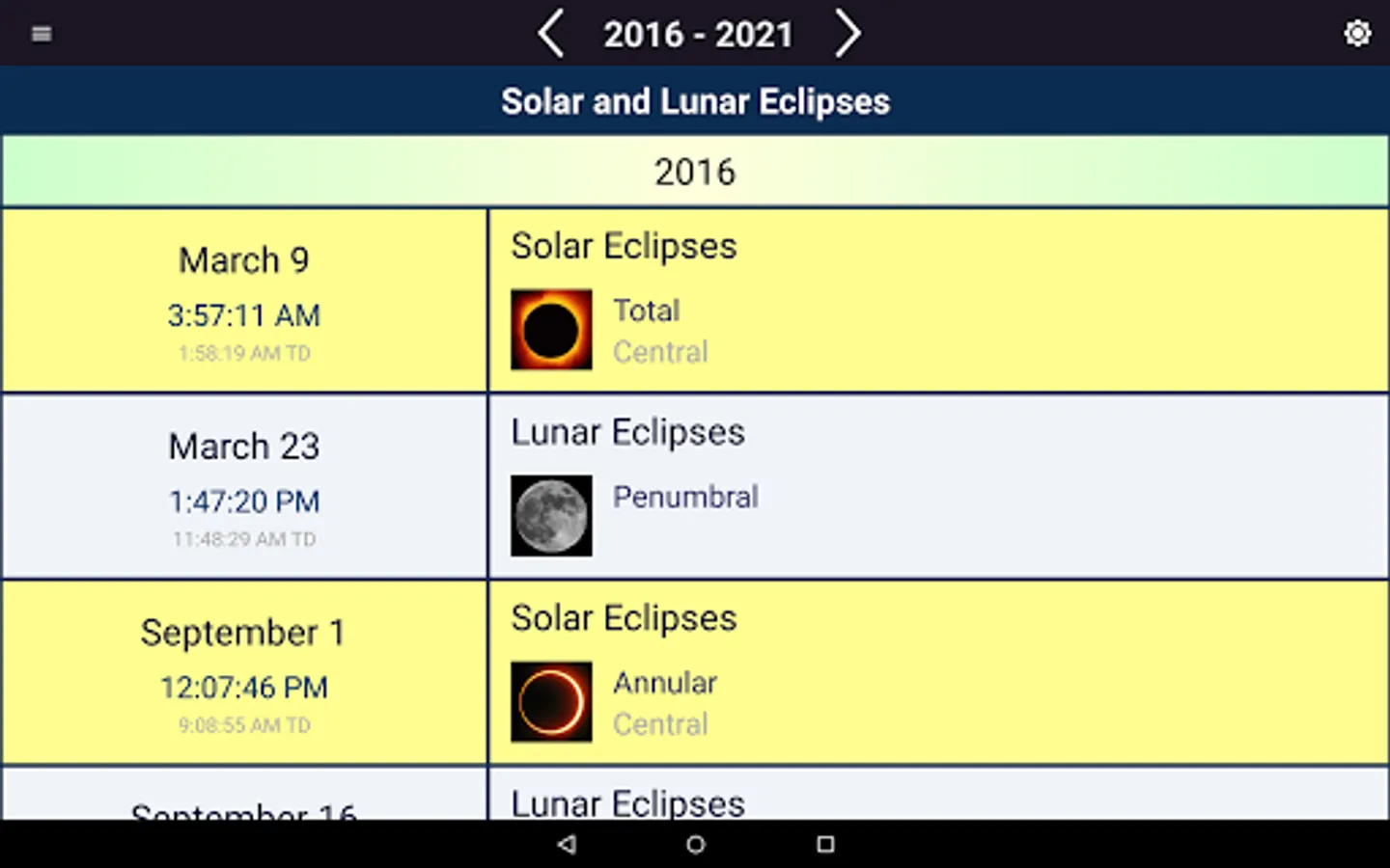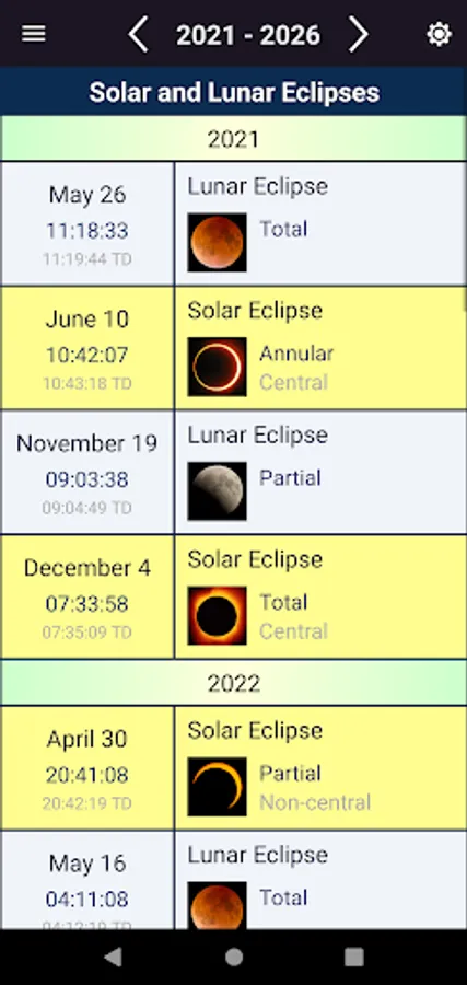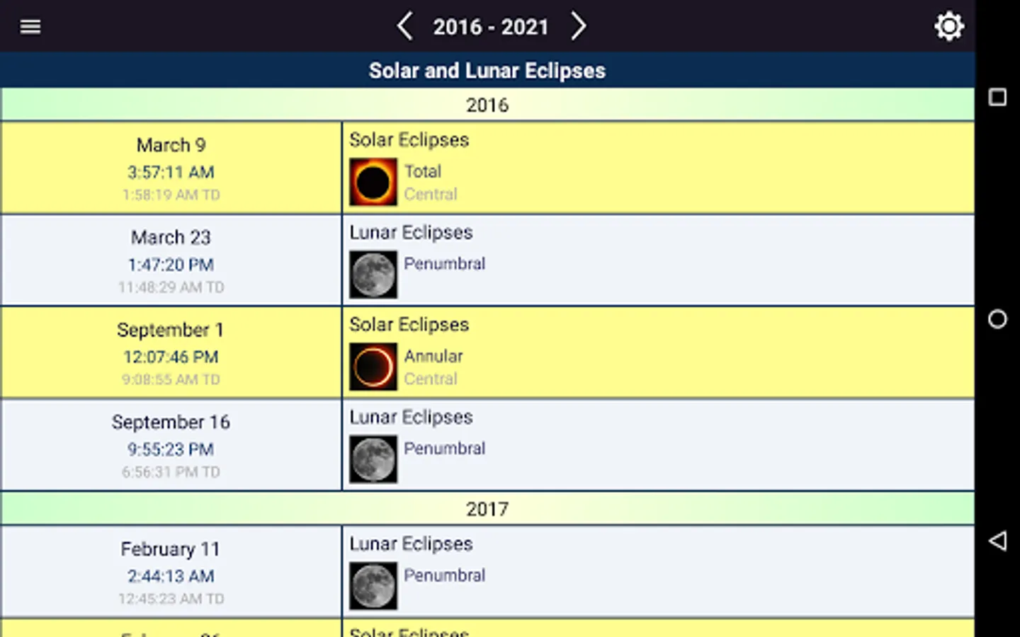- Solar and lunar eclipses for any year (a type of eclipse, date and time of eclipses);