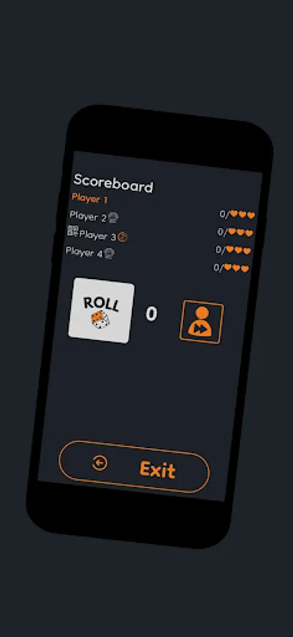 Every players has 3 hearts. When player rolls 6, he/she loses one heart. Player with the highest score wins.