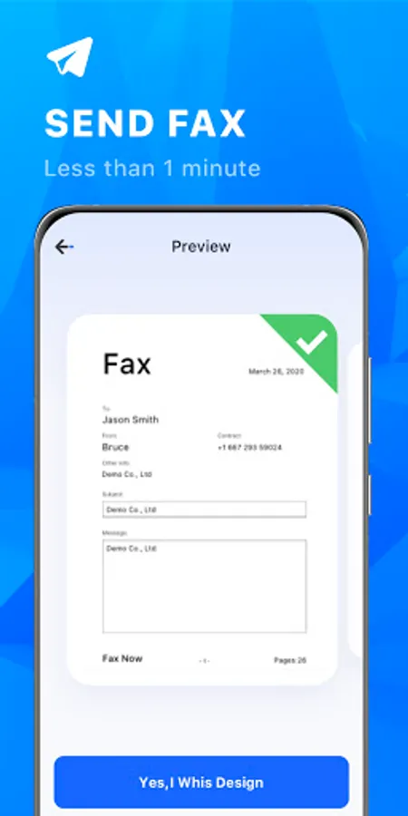 – Send fax within three taps