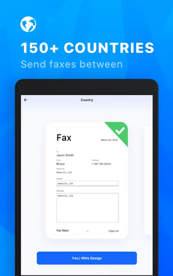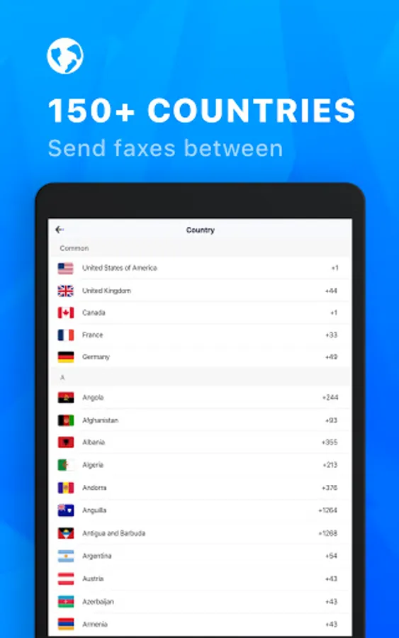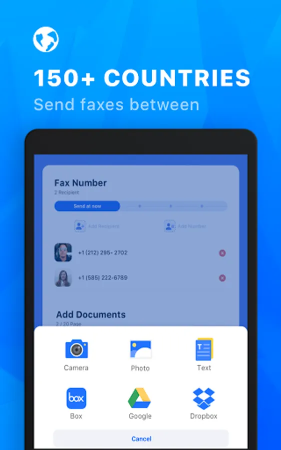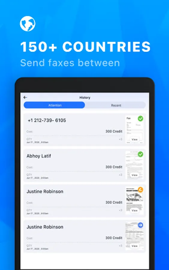 – Send faxes between over 150+ countries