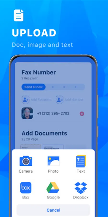 – Fax from Phone just about any file type as fax (PDF, DOC, JPG, PNG & TIFF, HTML)