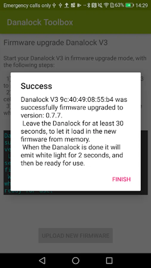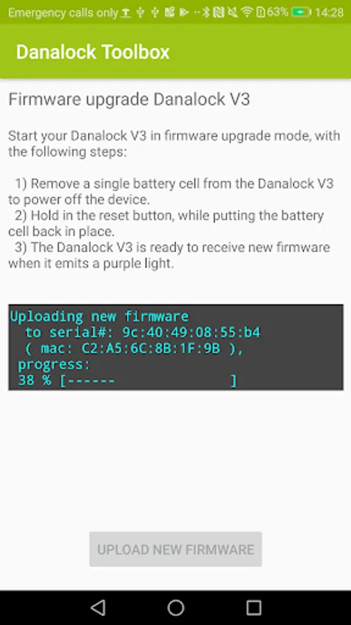 - Firmware upgrade your Danalock V3 over Bluetooth LE (does not work with older Danalock models v1 and v2).