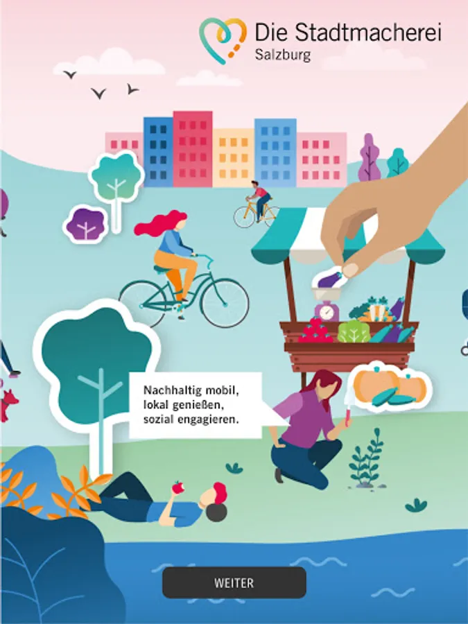 Sustainability in the city of Salzburg is now packed into an app: Explore your colorful, sustainable Salzburg in exciting tours, work on puzzles and compete in common challenges with other city makers.