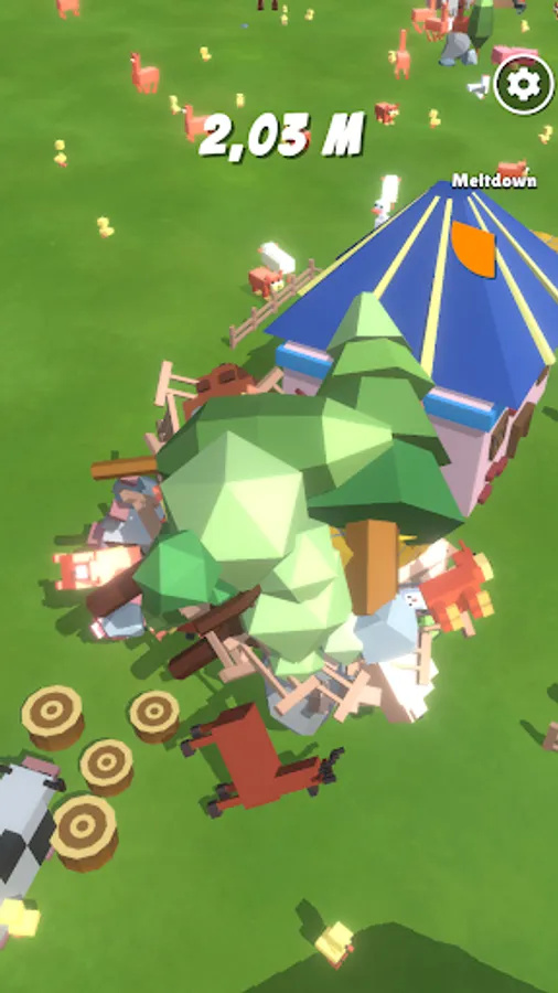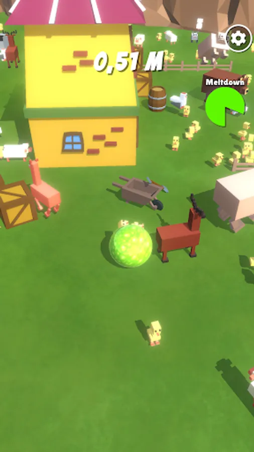 We roll and collect everything: Farm animals, gates, trees, rocks even the houses!