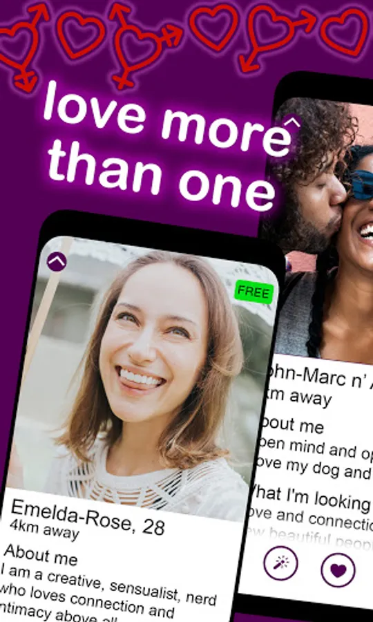 We have built openness and consent into the app design. Explore relationships, love and desire with like-minded and open people of all genders and preferences, in a safe and judgement free environment.
