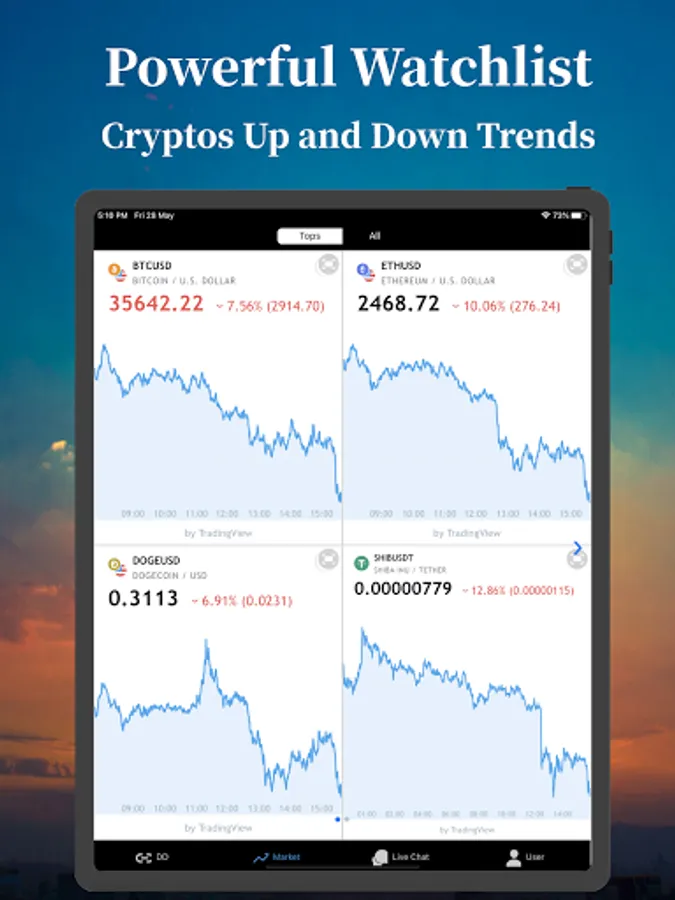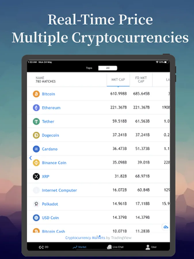 Put your favourite cryptocurrencies into the WatchList for the real-time pricing.