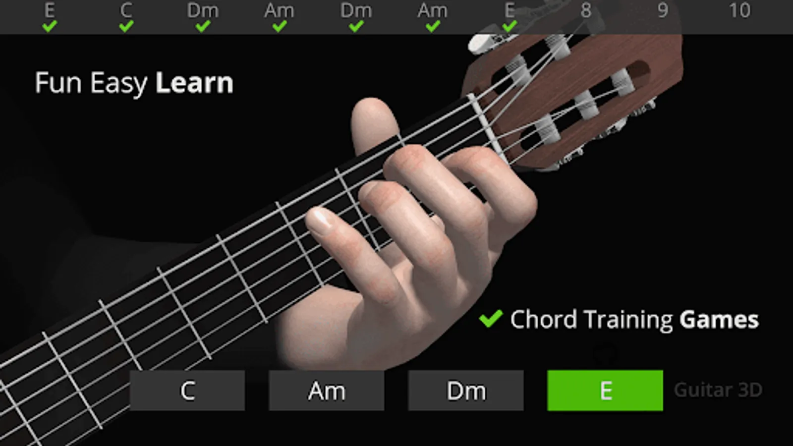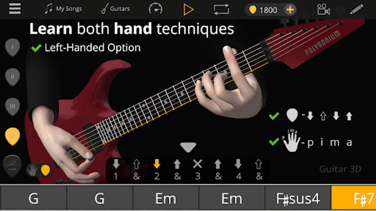 Learn how to play guitar chords, strumming and fingerpicking simply with this 3D ultimate guitar learning app just in minutes.