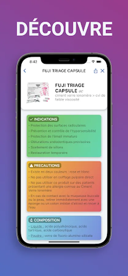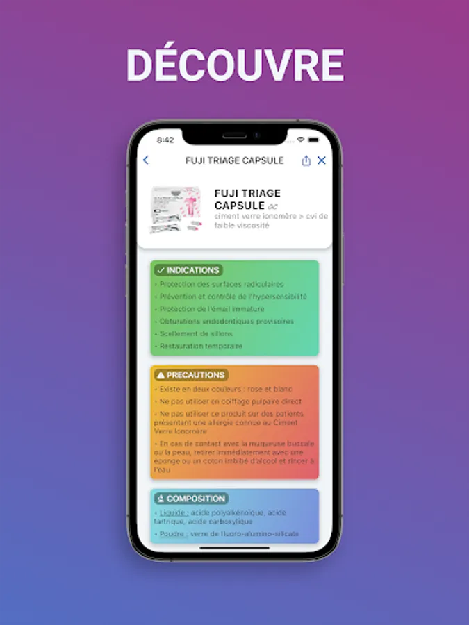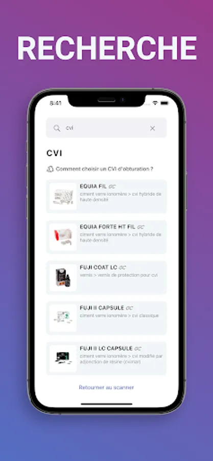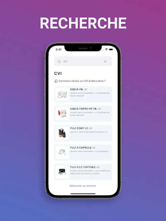 Thanks to its powerful integrated search engine, you will find the product you are looking for in seconds. Simply enter the name of the product or its indication for use to access its detailed product sheet. And if you prefer an even faster way to find product information, use the label scan feature!