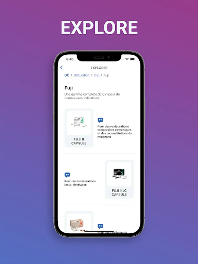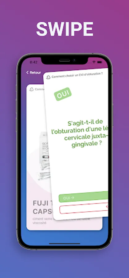 Finally, match with the ideal product for each act thanks to the "swipe" system. Answer a few simple questions and let the algorithm guide you to the perfect biomaterial for your need.