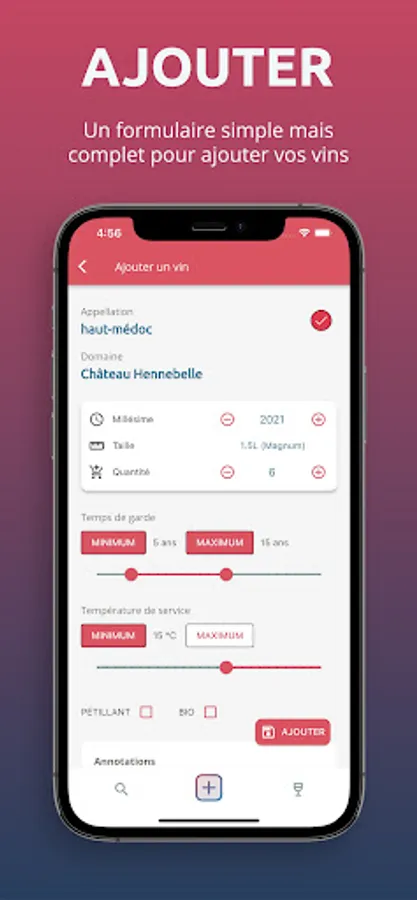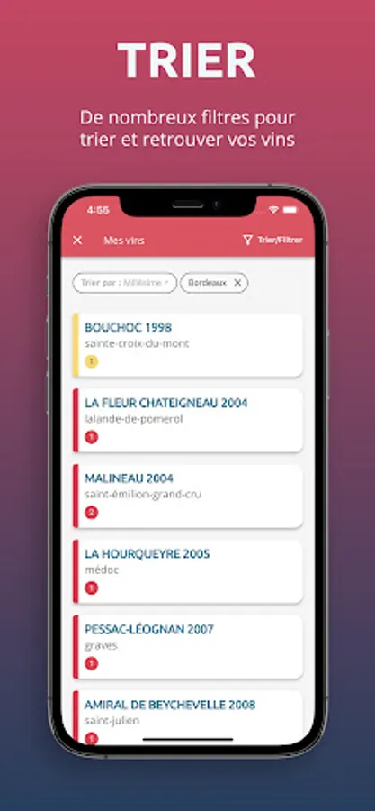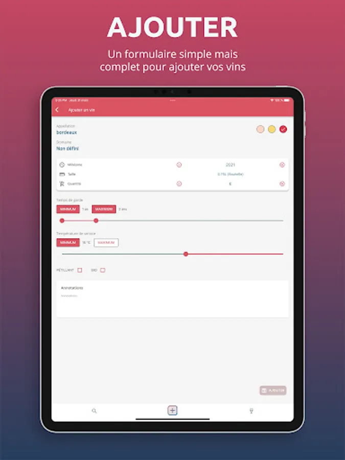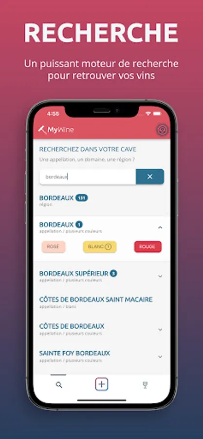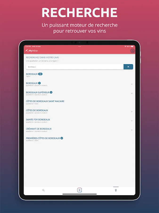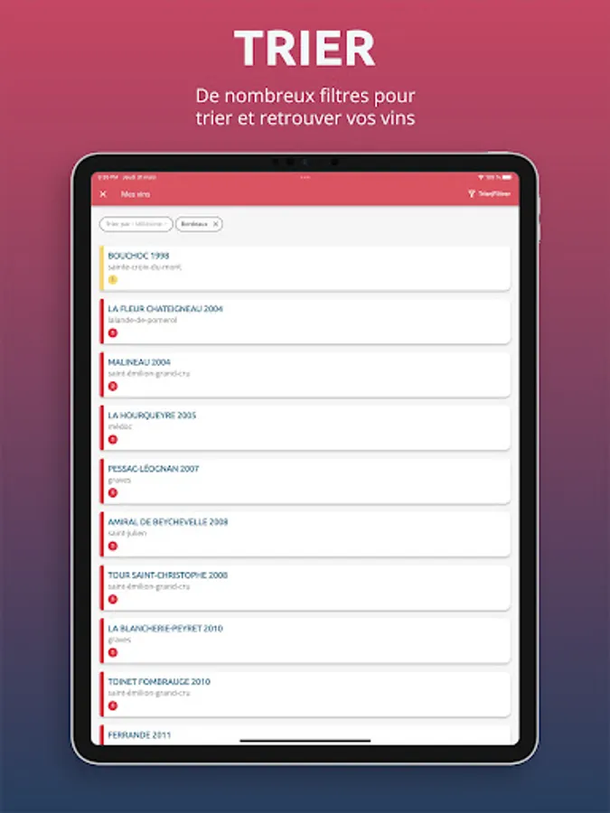 And the best for last: your cellar is saved automatically and free of charge on the cloud, which allows you to access it at any time from all your devices. No more worrying about losing your precious bottles or not knowing what you have in stock.