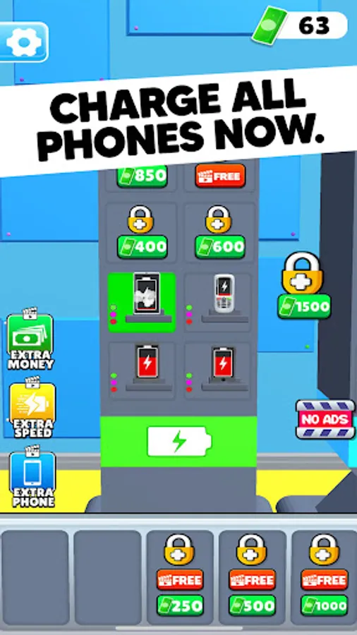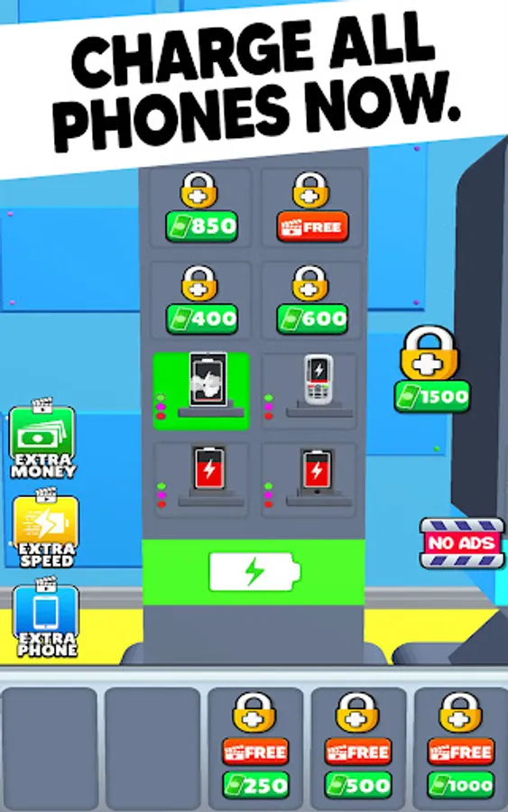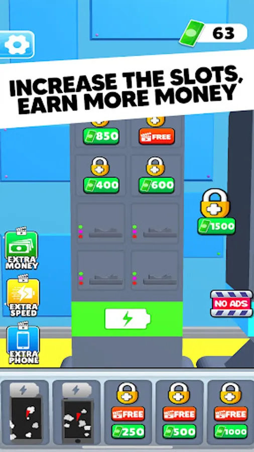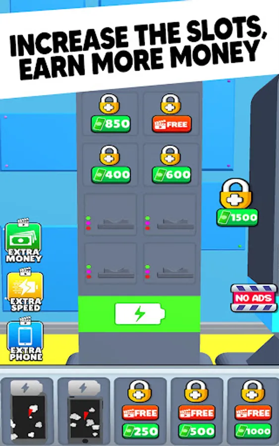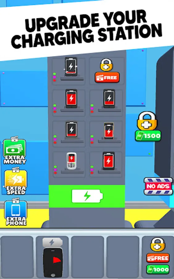 Develop phone charging station and start earning money. Unlock the slots like fast charging and wireless charging and earn more coins.
