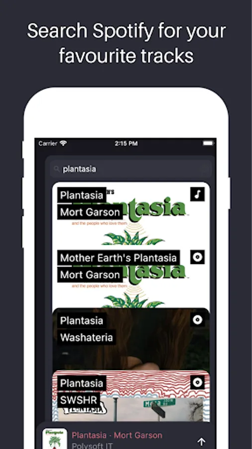 • Use the integrated Spotify search to find your favourite tracks/albums