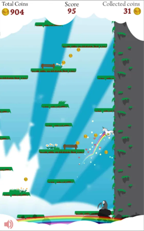 If you like unicorns, princesses and the grim reaper, you will find them all in this vertical platform game, that utilize coordinated double jump mechanics for a speeding unicorn that run through a fairy tale land of eternal sunshine and puffy clouds.