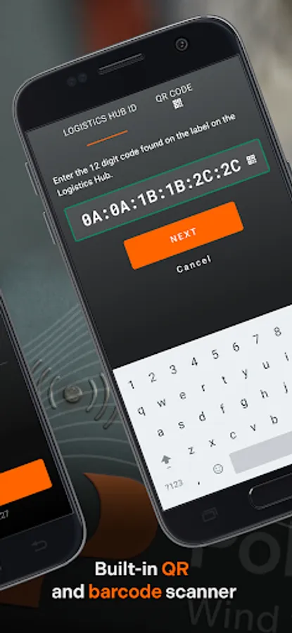 1) Scan the QR code on the Logistics Hub (or add its unique ID number manually)