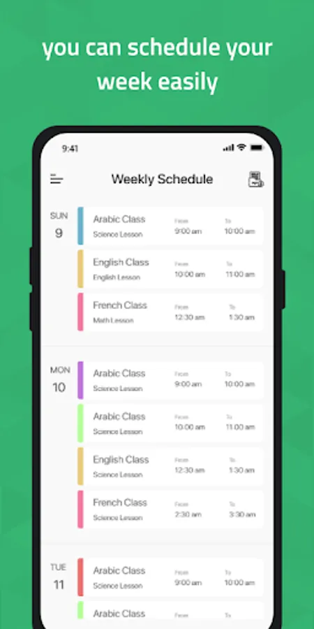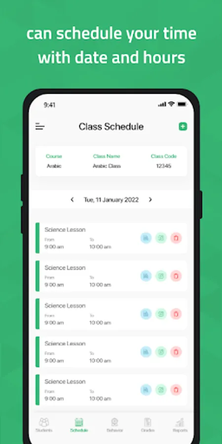 - إضافة الحصص الدراسية في الجدول الخاص بالفصل.