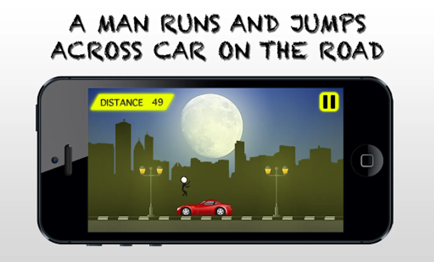 StickMan is the endless action game that you are a man runs and jumps across cars on the road to challenge yourself or your friend how far you can go. The game is displaying the distance that you can run on the road. This game will make you angry. calm down while playing this game so "PLEASE DO NOT BREAK YOUR PHONE".