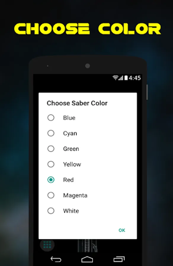 Lightsaber is an application that be able to simulate Light Saber on your smart phone device. When you feel boring you can turn on this lightsaber and have fun with it. The Lightsaber can simulate the saber sound effect, light and also can choose the saber color. You do not need to build the light saber by yourself. Discover all the famous ones, owned by star wars legends - famous Siths and Jedi, You can be in the light side or in the dark side as you want to be. If you really like Lightsaber, Now make your dream comes true with Lightsaber app.