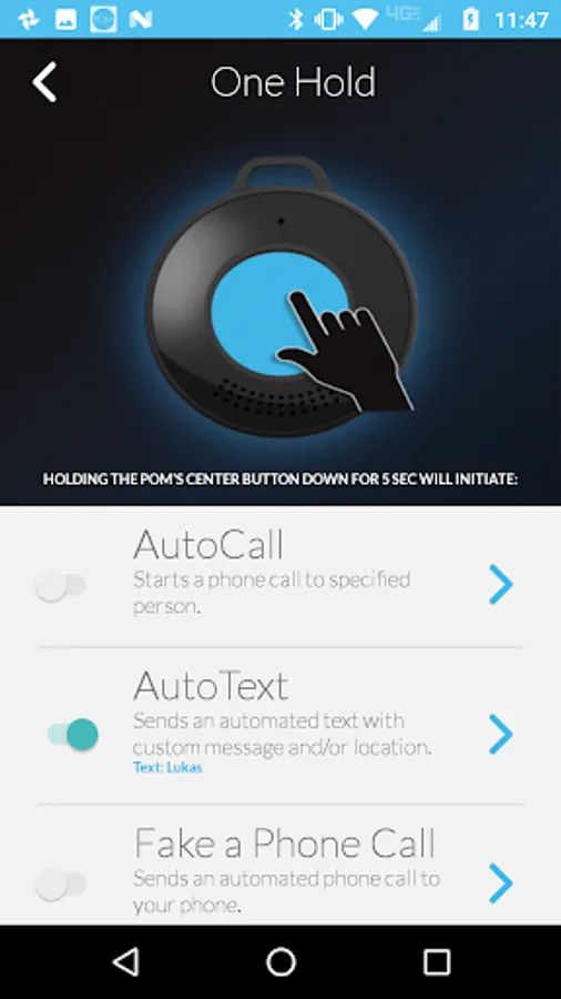 POM is the fastest way to get connected to help when you need it most. No more fumbling with lock screens, remembering numbers or relaying your location. With POM, all of that is handled in the press of a button.