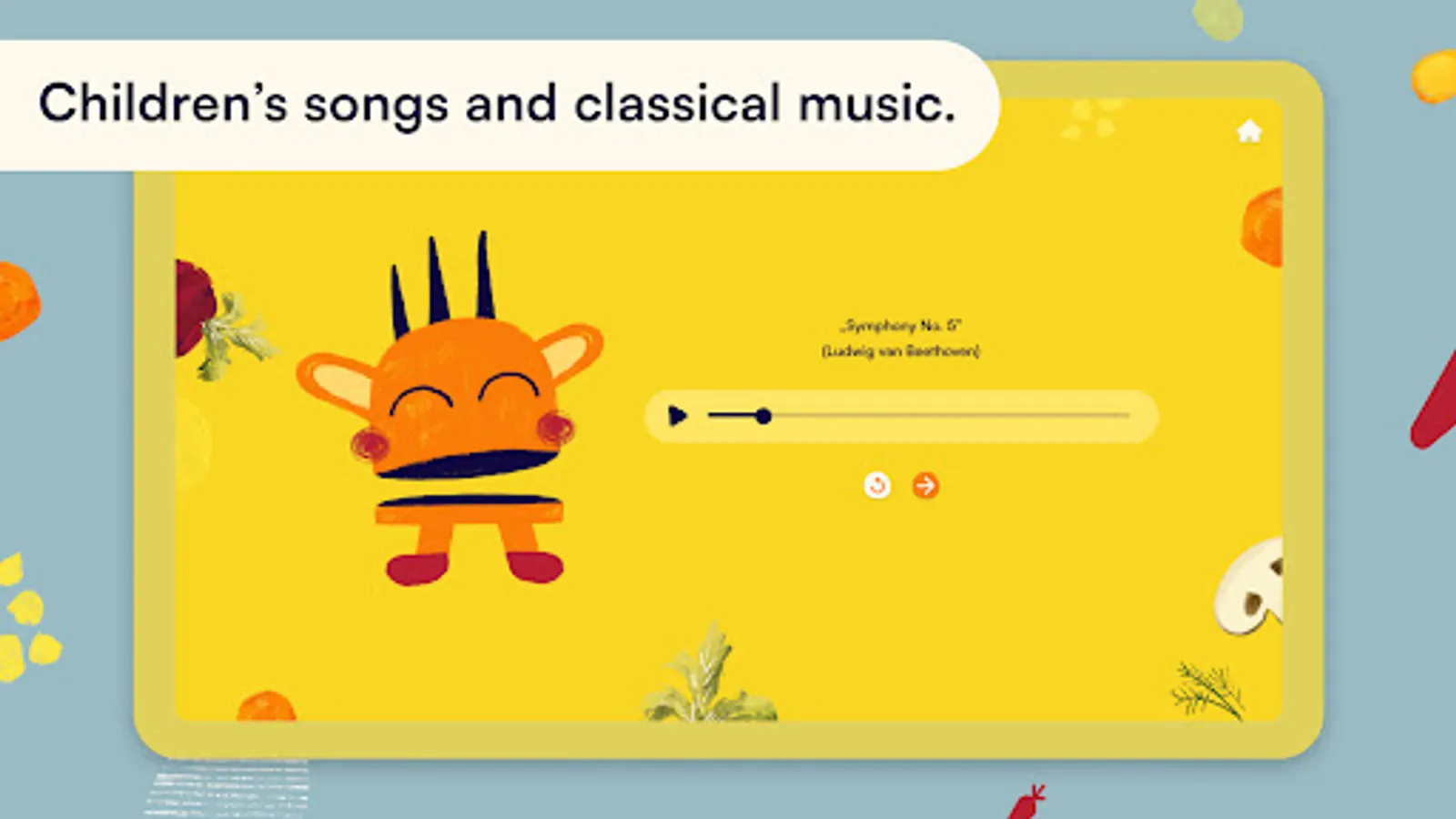 The kid practices music listening skills by matching fragments of a previously heard song. The simple and educational formula of the game provides valuable entertainment for your child.