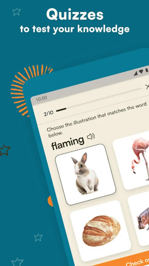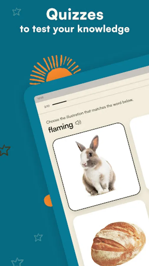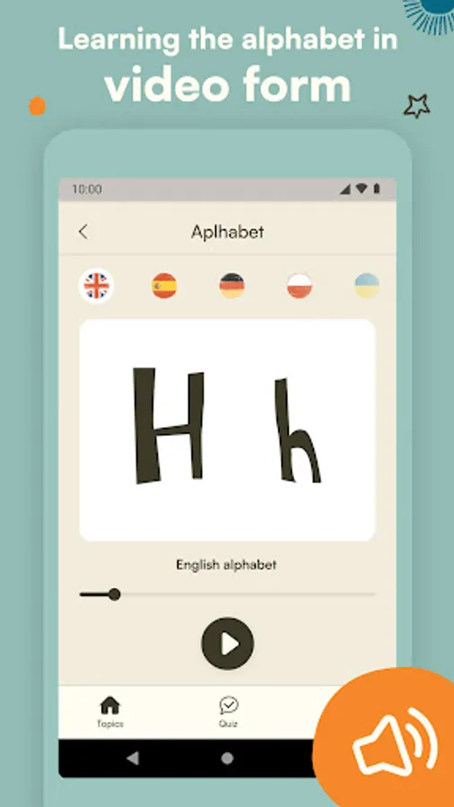 Sounds and images will effectively stimulate the memorization of new concepts and provide great fun. The simple formula will allow you to operate the application safely and unassisted. Words are grouped in 10 themes. You will also find alphabets and quizzes to test your knowledge.