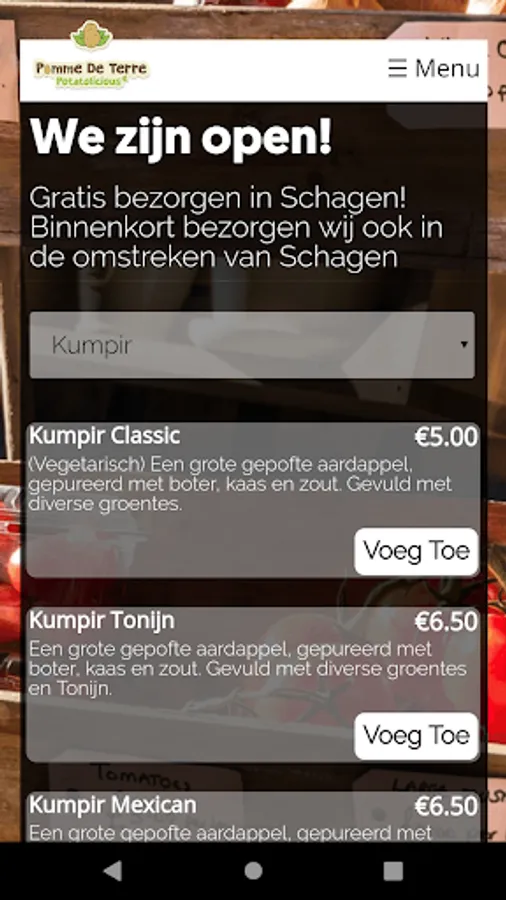 Easily order delicious kumpir dishes at Pomme de Terre. Always prepared with fresh ingredients.
