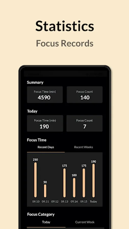 - Statistics of your focus time over time.