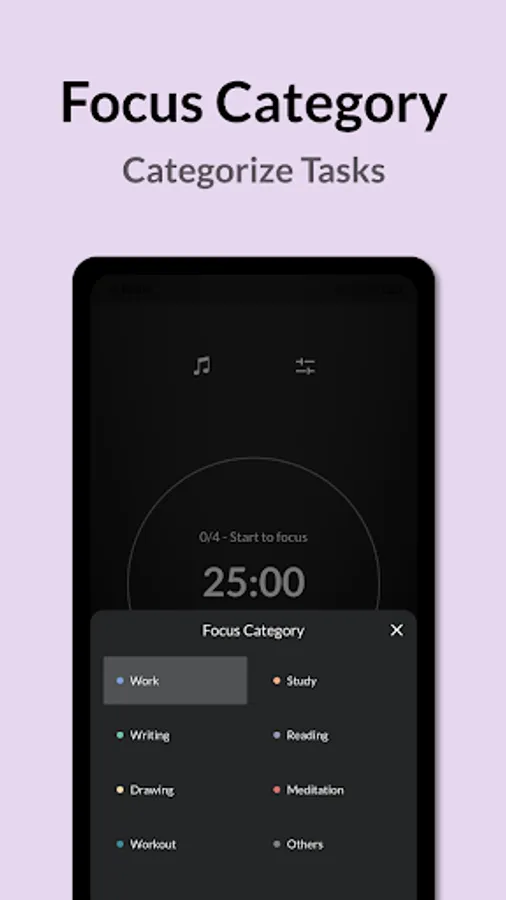 - Create your own focus categories with names and colours you like.