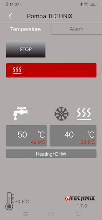 App for monitoring and basic control of a TX heat pump. It allows you to turn the heat pump on or off, set and view operating temperatures, view the operating mode and alarms that occurred during work. Additionally, the application shows the current external temperature.