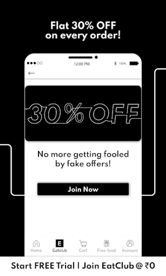 Order on EatClub. FLAT 30% OFF Everytime. NO T&C. Free trial! Join EATCLUB @ ₹0
