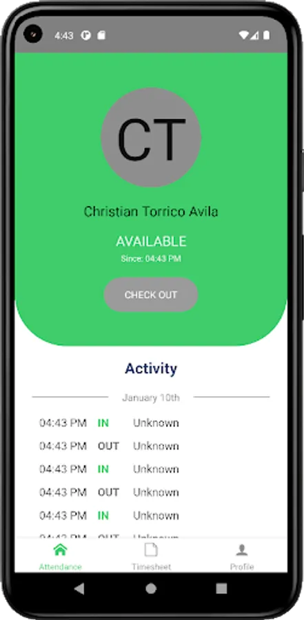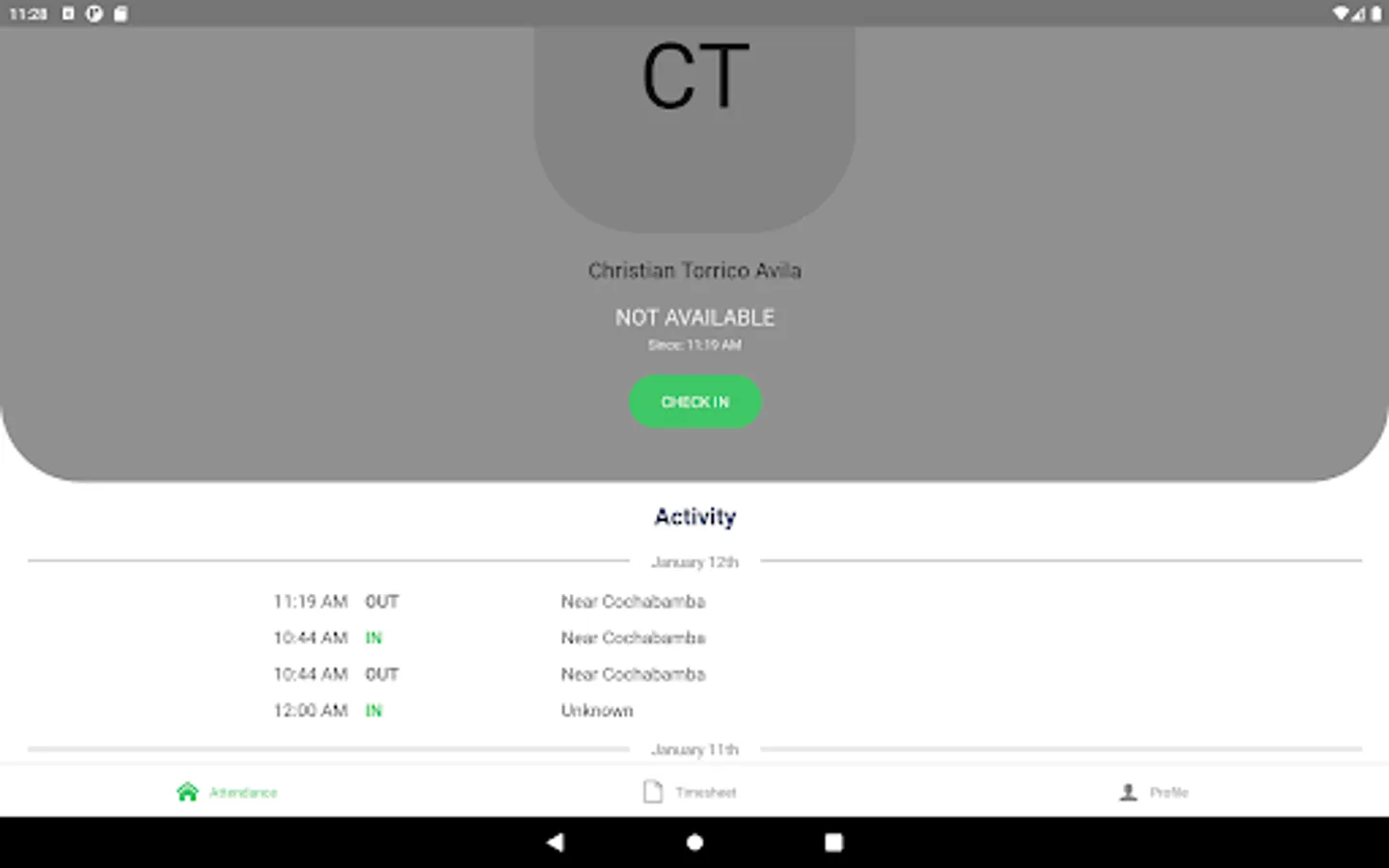 Ponctuel displays your timesheet, exports user data from a group or individual, also provides a map to see your partners location.