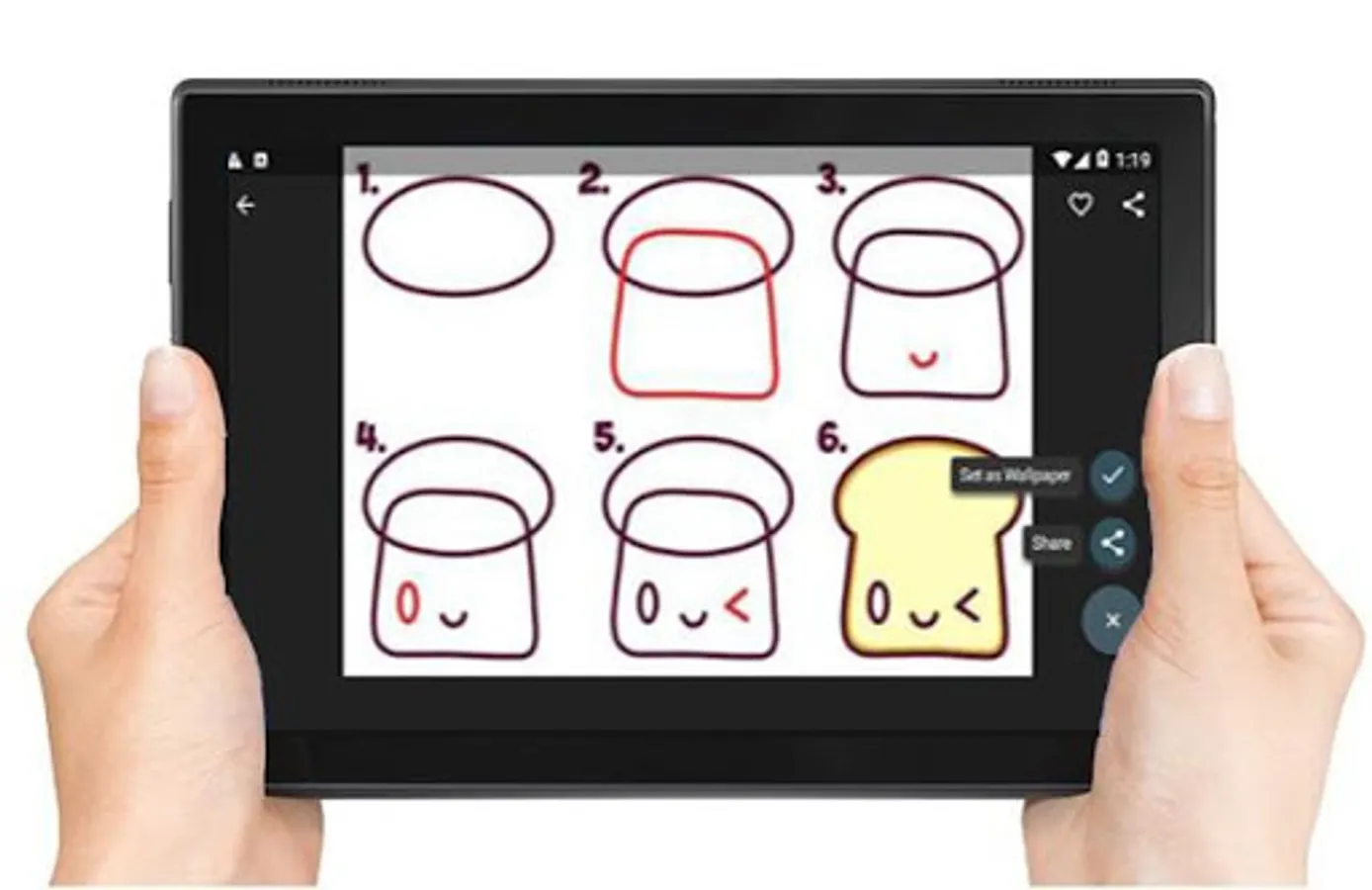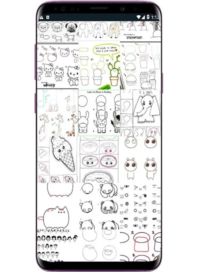 The drawing application for all of you which let anyone effortlessly following the drawing process, which enable anybody to learn step by step draw cute drawings, you can easily be drawing and sketching various styles cute drawings like be playing a drawing game.
