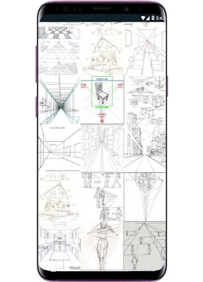 One point perspective is the easiest perspective drawing tutorial style for beginners to learn. It’s because all lines lead to a single point, and regardless of how complex your drawing object is, it's easy to realize when you've made a mistake, and just as easy to correct it.You need to recognize and learn the elements of the perspective drawing technique, such as knowledge on creating lines, shapes, values, textures, colors, and space. You should know the terms used in drawing perspective such as station point, horizon line, vertical line, vanishing point, and picture frame. Knowing all these will make you easy to draw with perspective technique as a beginner;and this application will completely help you draw with perspective technique.