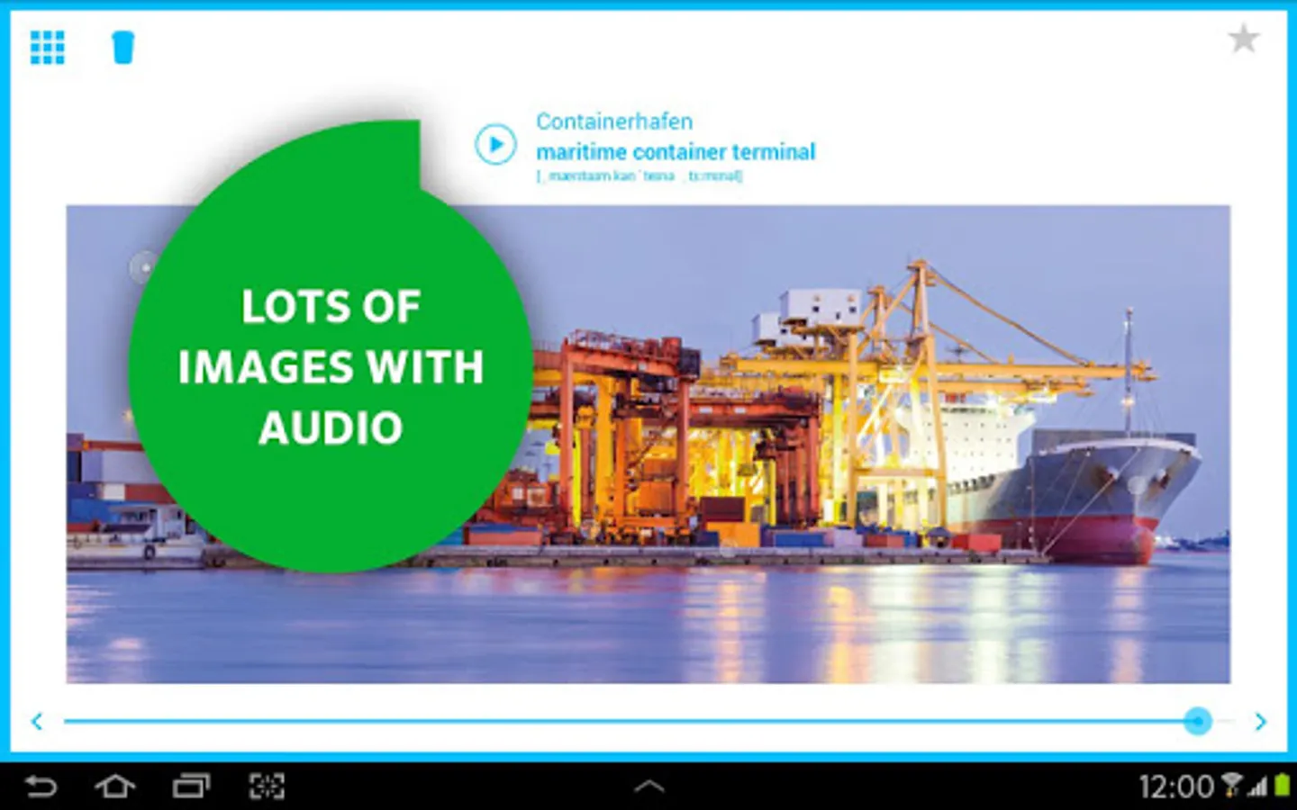 With the PONS Picture Dictionary English. you can view, listen to and learn over 15,000 words, translations, images and audio files. It’s the best combination to learn and remember vocabulary. Perfect for everybody who wants to start learning English or keep training their English skills.
