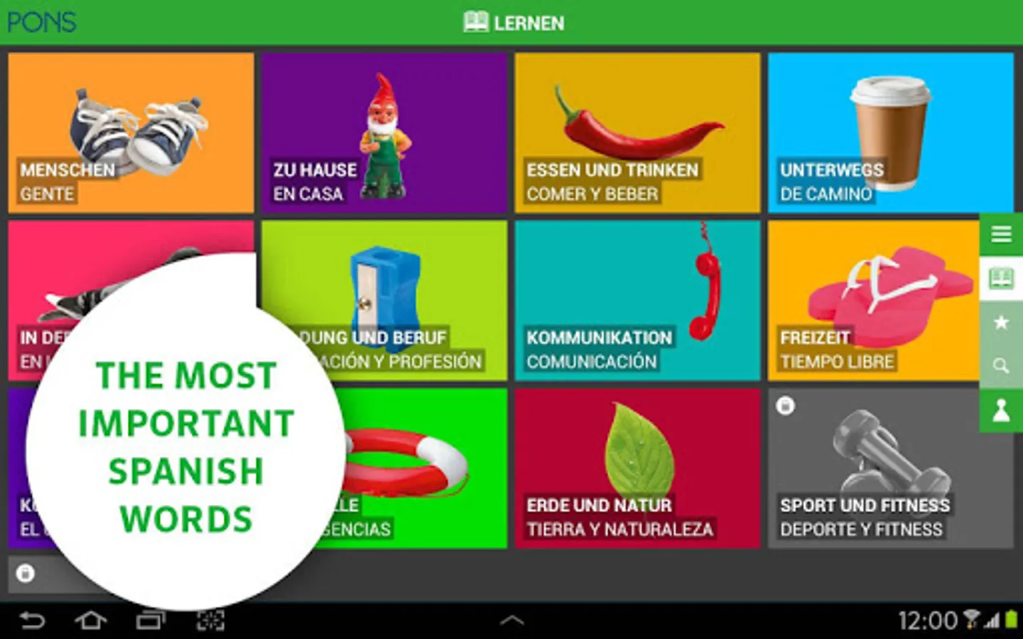With the PONS Picture Dictionary Spanish. you can view, listen to and learn over 15,000 words, translations, images and audio files. It’s the best combination to learn and remember vocabulary. Perfect for everybody who wants to start learning Spanish or keep training their Spanish skills.