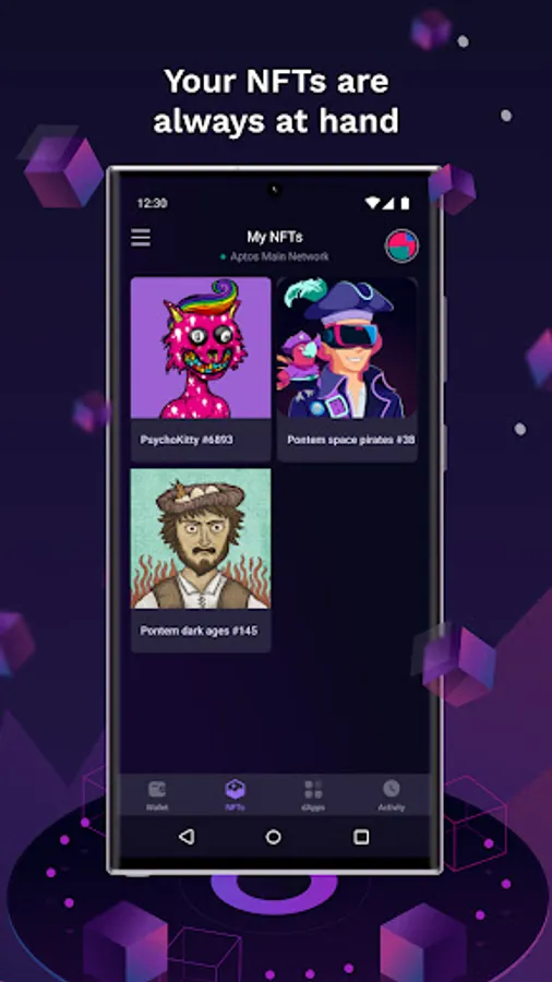 Pontem Wallet is the first wallet to integrate natively with Topaz, the biggest NFT marketplace on Aptos. Browse collections and buy NFTs in a few taps.