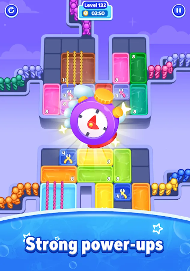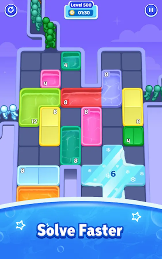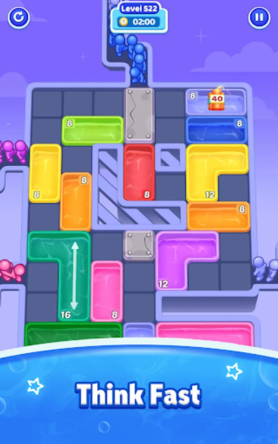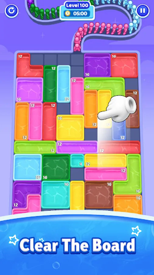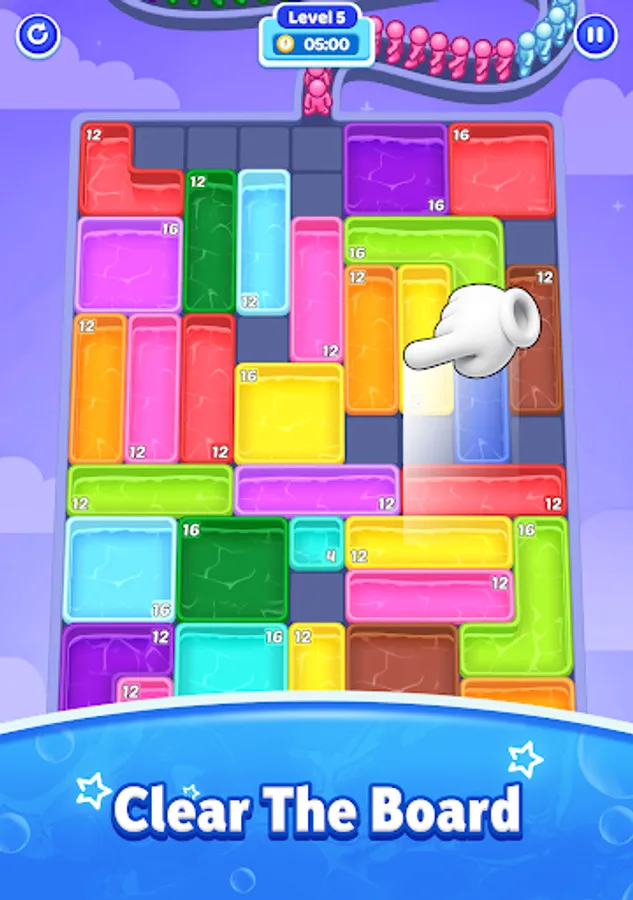 Slide the pool around the board and guide the colorful stickmen to jump in.